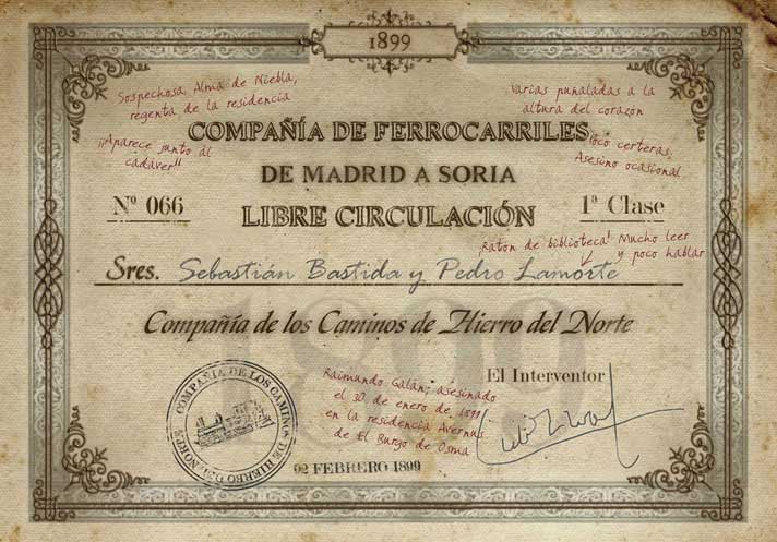 Boleto de naturaleza especial para viajar desde Madrid a Soria. Nótense las anotaciones escritas a mano alzada.